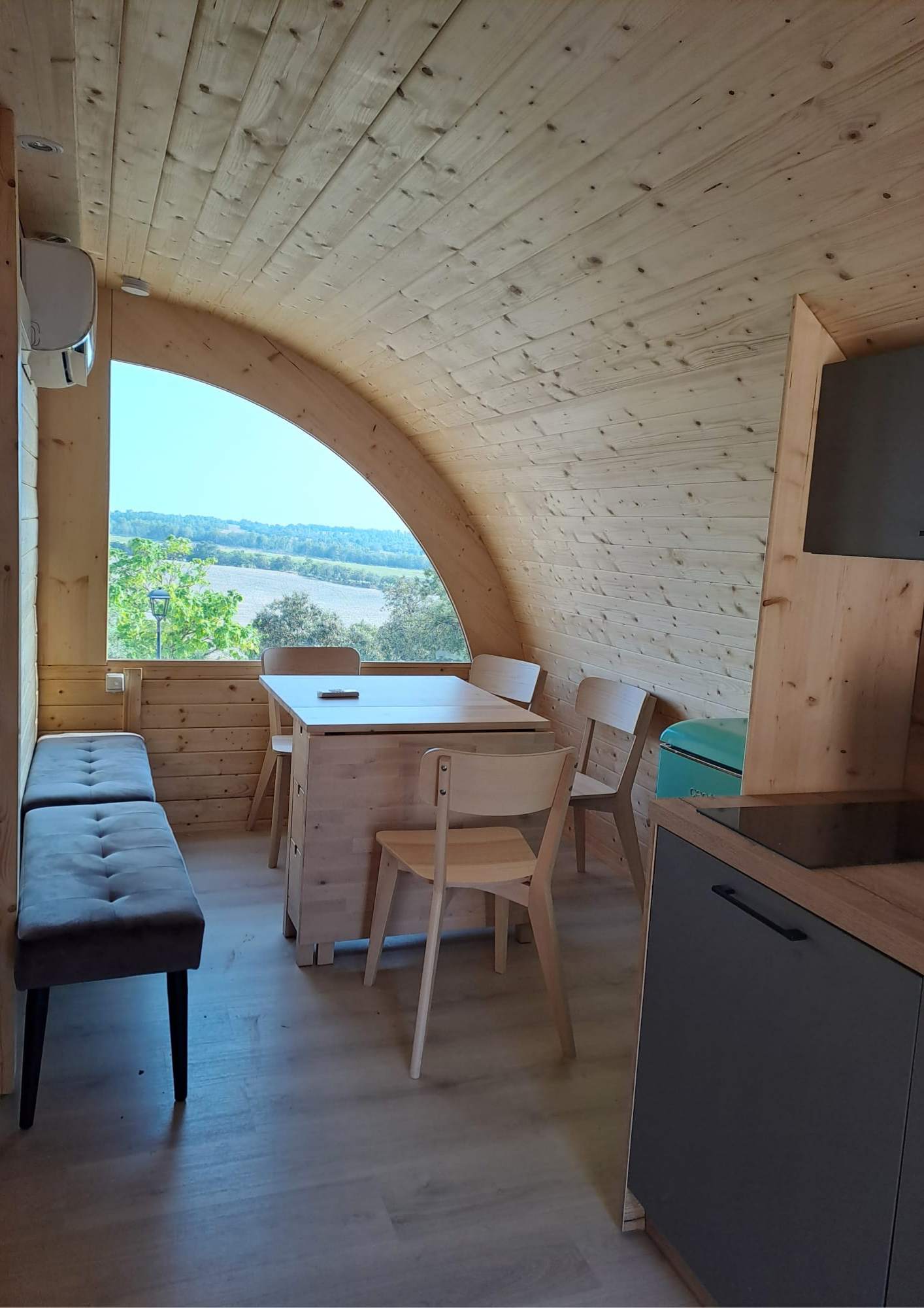 - Para una experiencia más completa, ha incorporado 2 módulos del Kit Pod de 6m de longitud, equipados con cocina completa y ventanas panorámicas, permitiendo a las familias disfrutar de vistas impresionantes durante el desayuno.