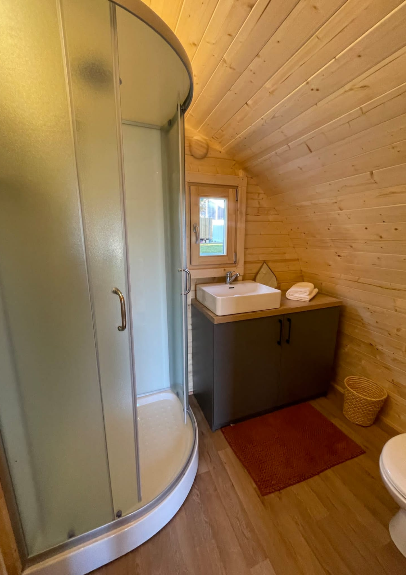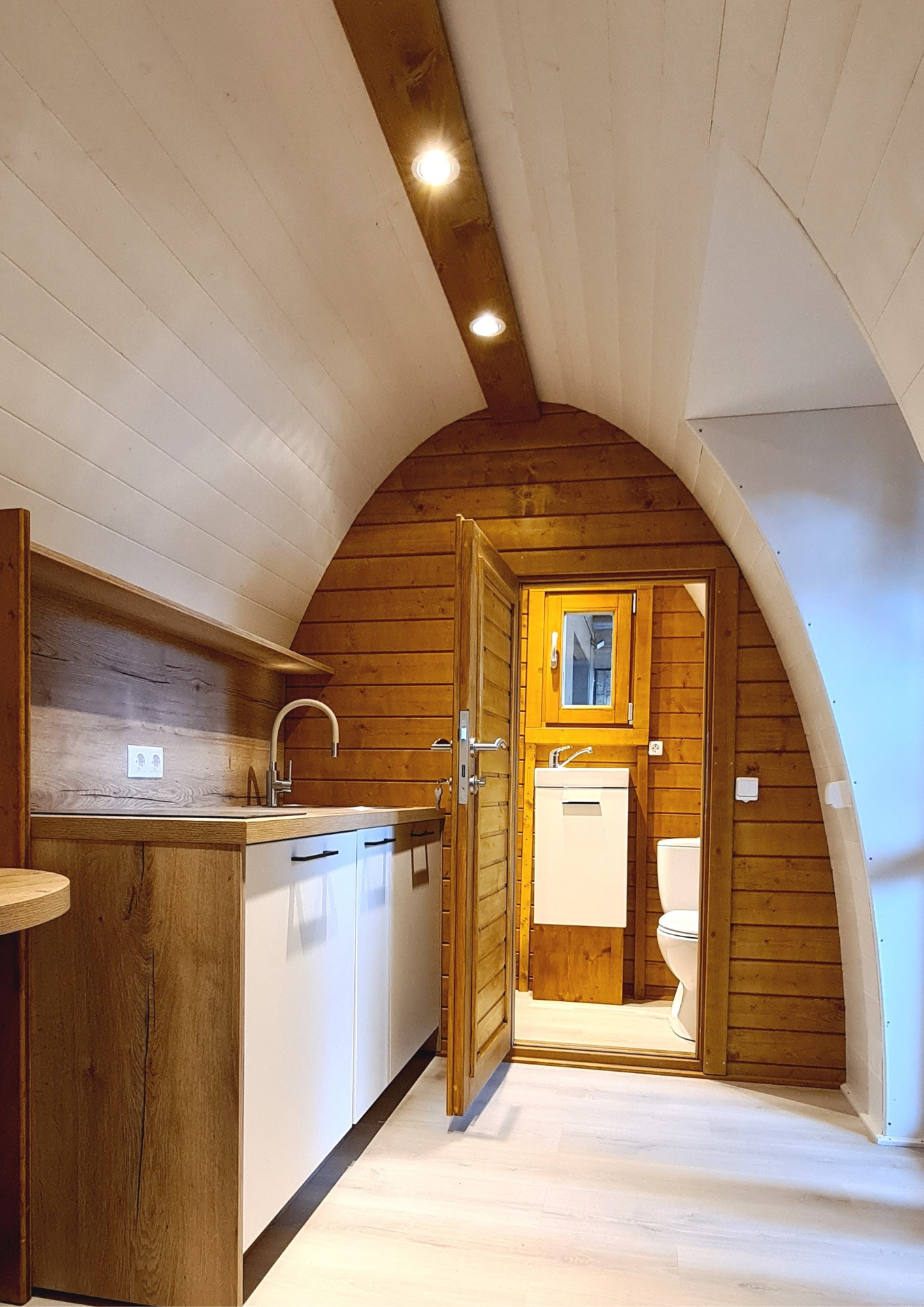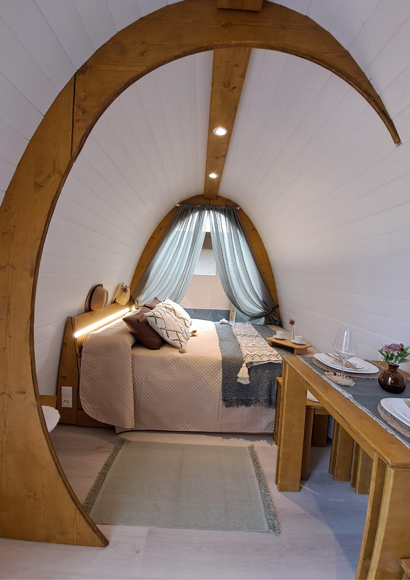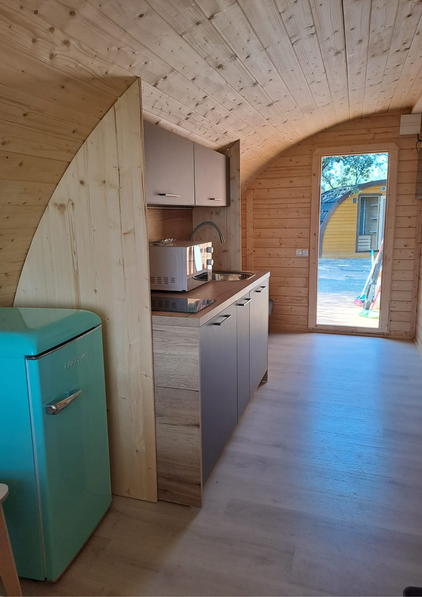 - Ha seleccionado la cabaña Greenpod, diseñada con puerta lateral y equipada con un elegante diseño nórdico ideal para parejas, con baño completo y cocina.