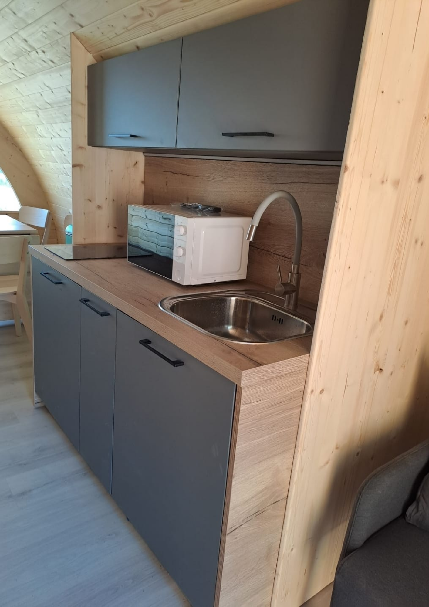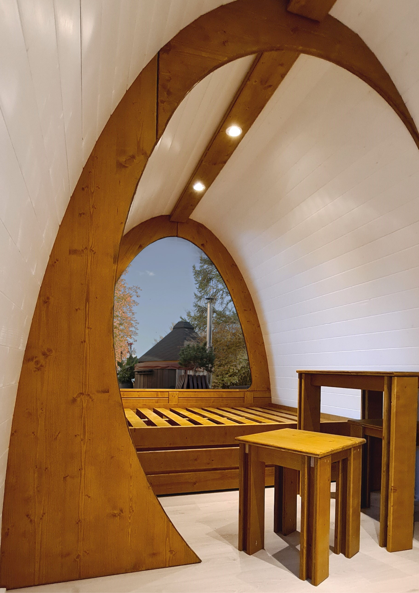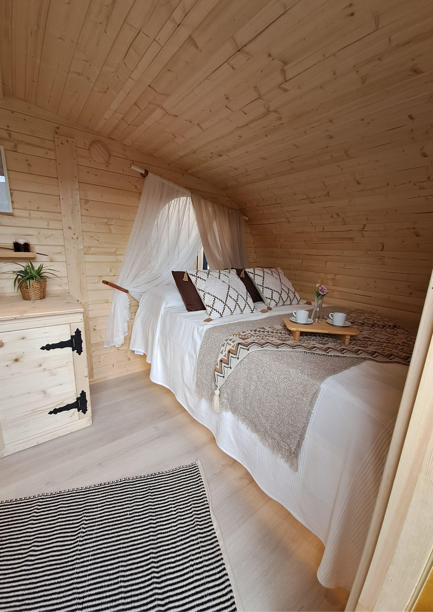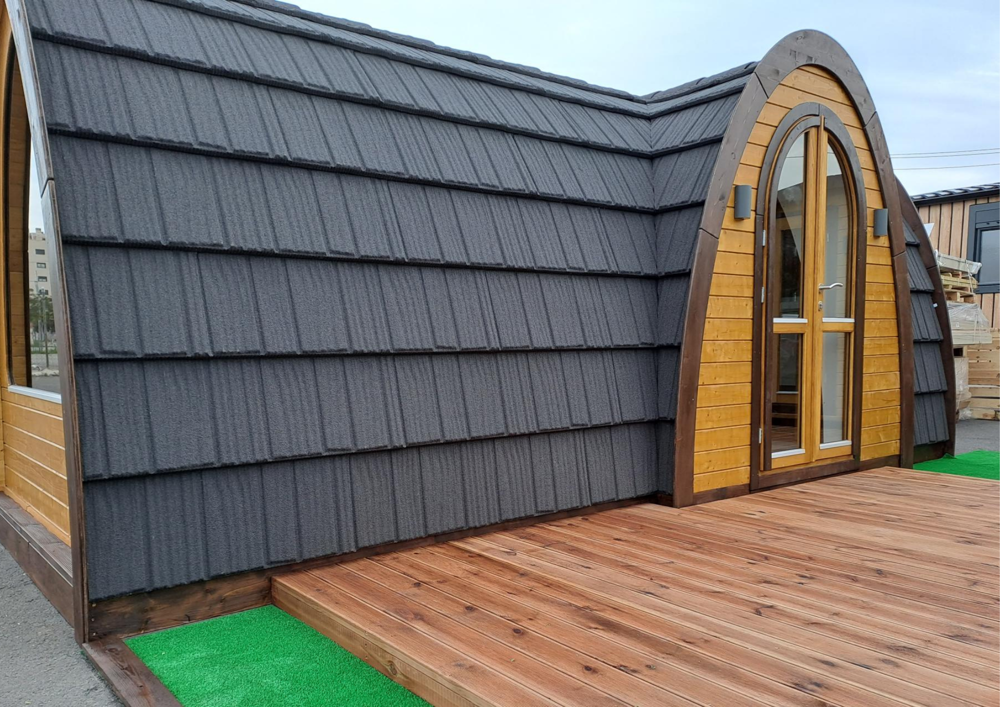 - Ha seleccionado la cabaña Greenpod, diseñada con puerta lateral y equipada con un elegante diseño nórdico ideal para parejas, con baño completo y cocina.