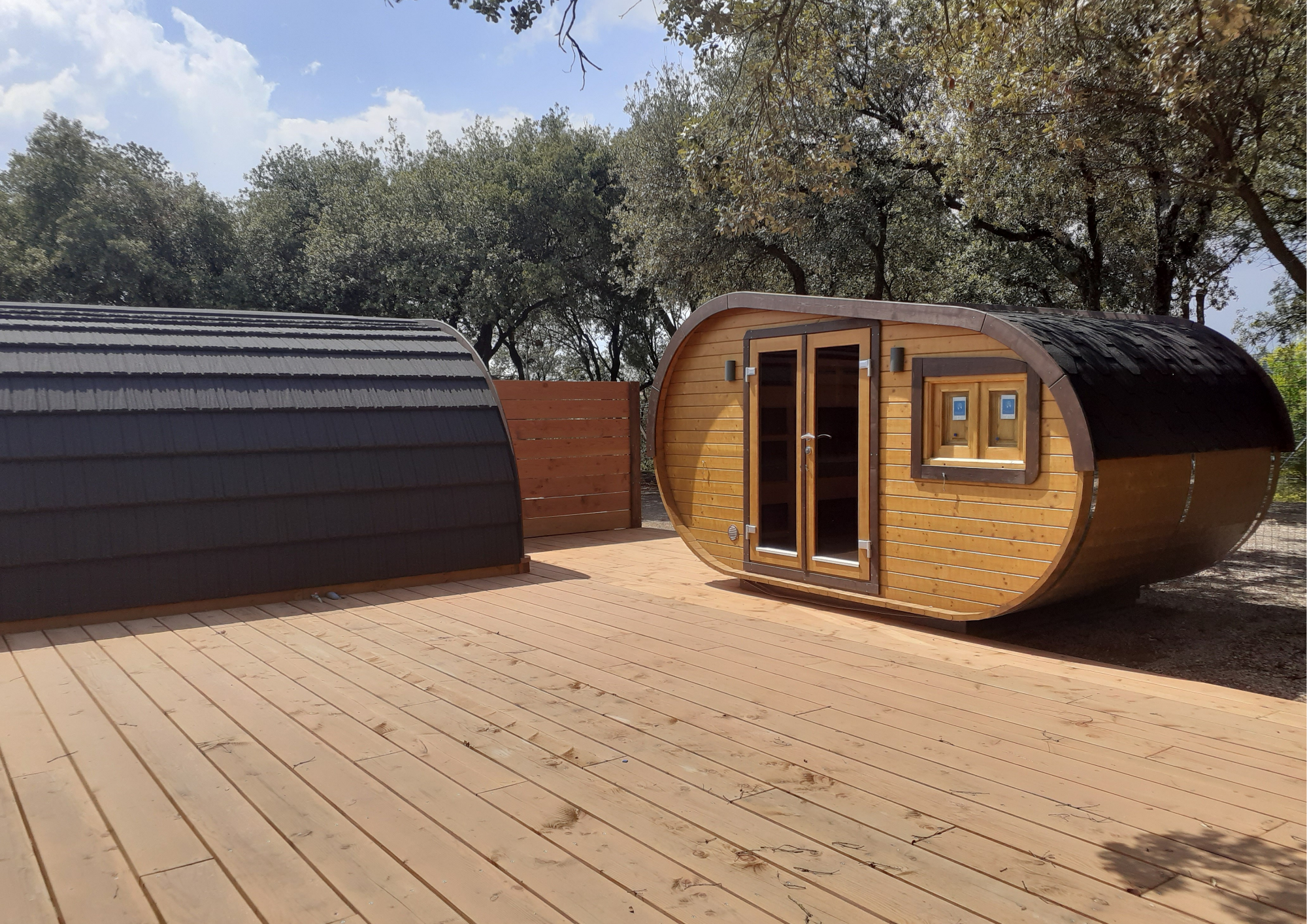 El cliente está ampliando su oferta de alojamientos al crear una zona de Glamping en el espacio previamente ocupado por las caravanas de los clientes fijos. Para esto, ha adquirido una variedad de cabañas innovadoras: